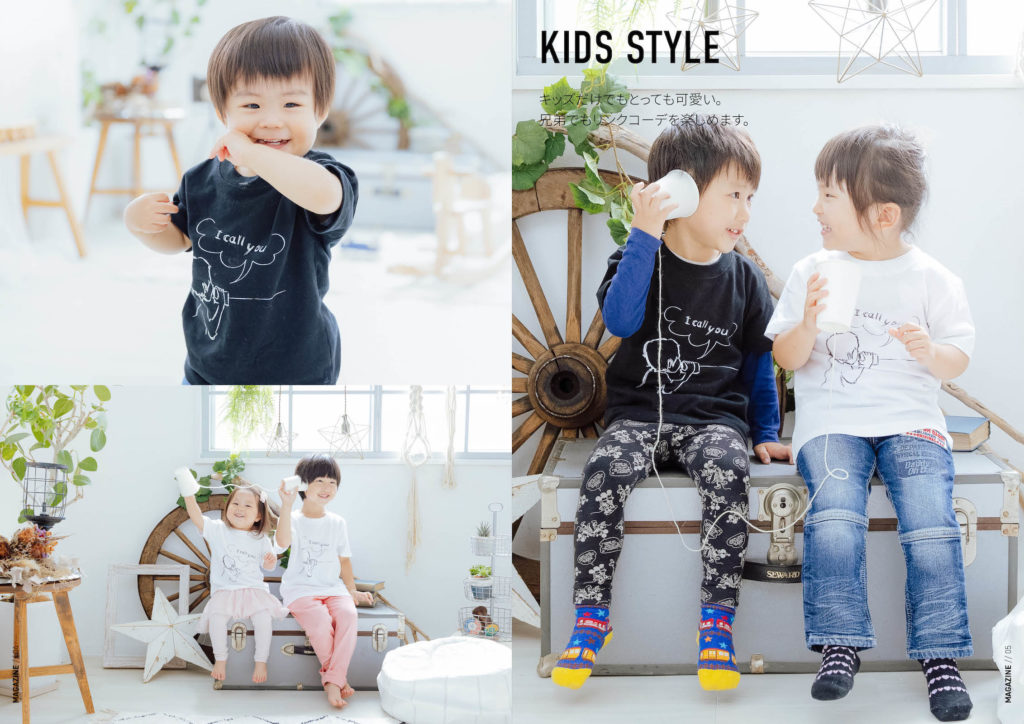 キッズだけのコーデ。糸電話で仲良く撮影。kodomotocameraさんのスタジオを爽やかな光がしっかりと入ってくれるので、輝いた写真が撮影できてとっても嬉しいです。