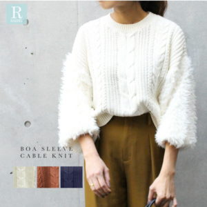 ドッキングニットトップス。ケーブルボディに大人可愛いボアスリーブ。
