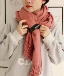 ピンクのストールは顔回りを明るく見せてくれます。