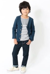 伸縮性のあるリブ素材のニットカーディガンなので活発な男の子にも◎