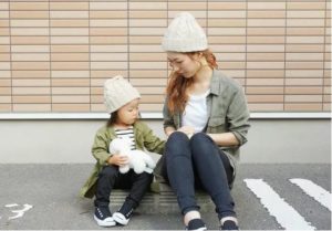 ニット帽を合わせたさりげないリンクコーデはとってもかわいくきまりますよ!