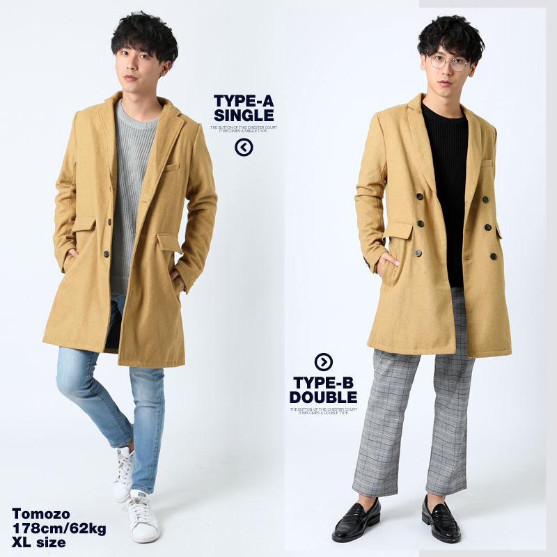 チェスターコート メンズコート メルトンウール ロング丈 ロングコート