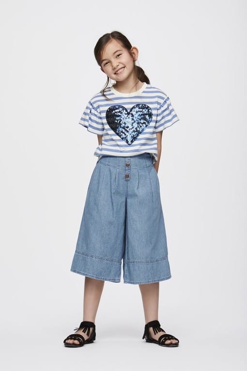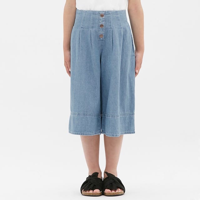 GIRLSデニムフロントボタンワイドパンツ(http://www.uniqlo.com/jp/gu/item/304398)は、おしゃれに主張が出てくる女の子に人気のアイテムです。ワイドパンツは、様々なトップスと相性が抜群で大人っぽい。