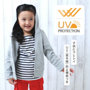 吸水速乾の効果があるパーカーは、たくさん遊んで汗をかく子どもには、嬉しい機能。もちろんUVカットなので、安心ですね。色も10種類と豊富に揃っているので、子どもがお気に入りの色もきっとあるはず!