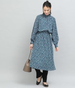 秋冬は洋服が暗い色になりがちなので、花柄ワンピースを1枚着るだけでグッと華やかになります。