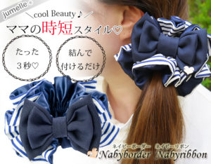 【ジュメル神戸】ネイビーボーダーとネイビーリボンシュシュ