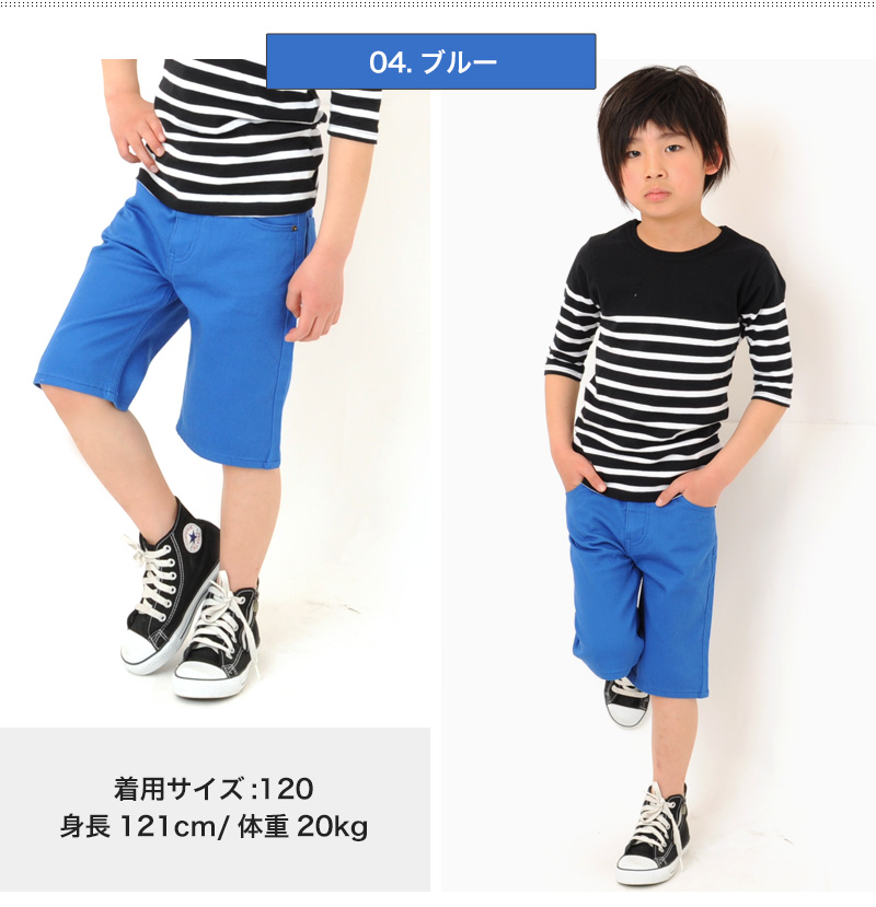 ハーフパンツは、素材や色で雰囲気も変わってきます。綿素材やデニム素材、色も豊富に揃っています。色違いで兄弟姉妹のパンツを揃えても可愛いですね。