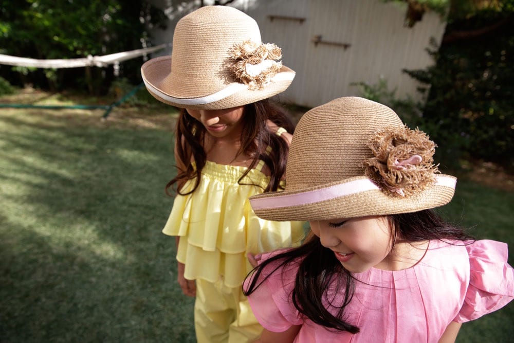 暑い日が続くと、出かけるのも億劫になってしまいますが、ママと女の子、姉妹で帽子をリンクコーデしたら、お出掛けがもっと楽しくなるはずです。上品な帽子を被ってお買い物へ出かけましょう。