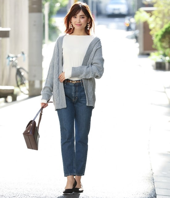 カーディガンを着ると大人っぽく見え、ワンランクアップのコーデが完成します。