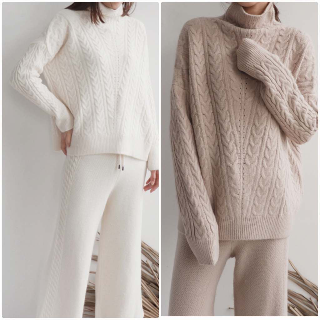ハイネックで暖かく、ケーブル編みもポイントになり可愛いですよね♪