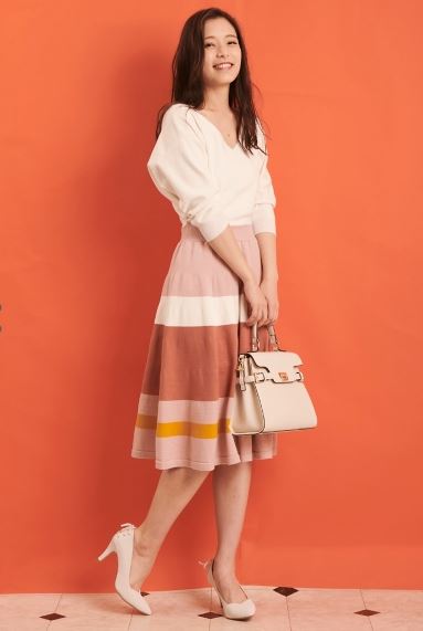 ウエストをシェイプしてフィット感を出しつつ、フレアスカートのシルエットが上品な印象を与えてくれる