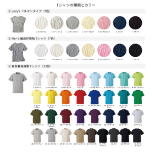 カラーはお好きな色で作成することができます!Tシャツの形状も選べるのが嬉しいですよね♪