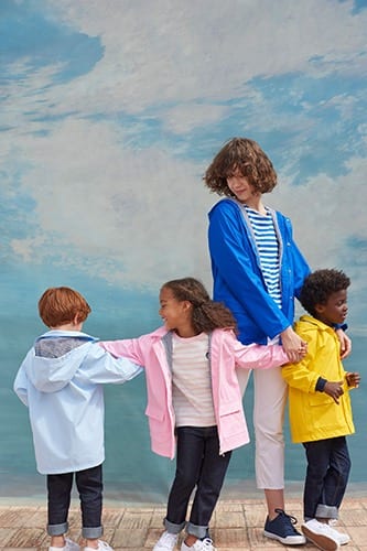 昔からフランスのブルターニュ地方の漁師が着ていたオイルクロスのコートを参考に生まれた、ヨットパーカー。ヨットパーカーは、プチバトーの代表するアイテムであり、定番商品です。シンプルで、サイズも豊富に展開されているので、パパやママ、兄弟姉妹でリンクコーデできます。