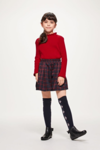 今日は何を着ようかな?と迷った時は、Tシャツに合わせるだけでも、きちんと感を出すことができます。肌寒くなってきたら薄手のニットをインして着こなすのも良いですね。ママと女の子で同系色のチェックで楽しみましょう。