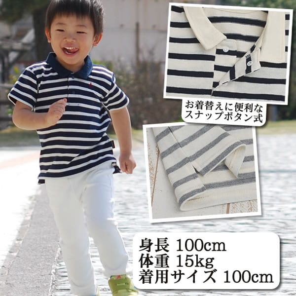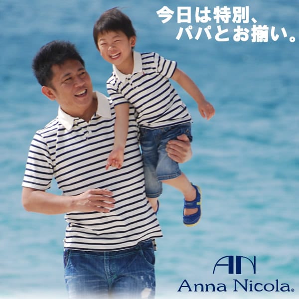 日本製子ども服ブランドの「Anna Nicola」のボーダー柄の夏らしいポロシャツ。