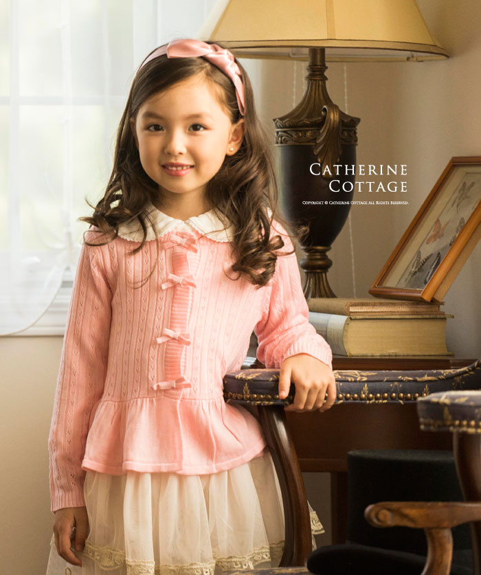 裾のペプラムと小さなリボンがガーリーなカーディガン