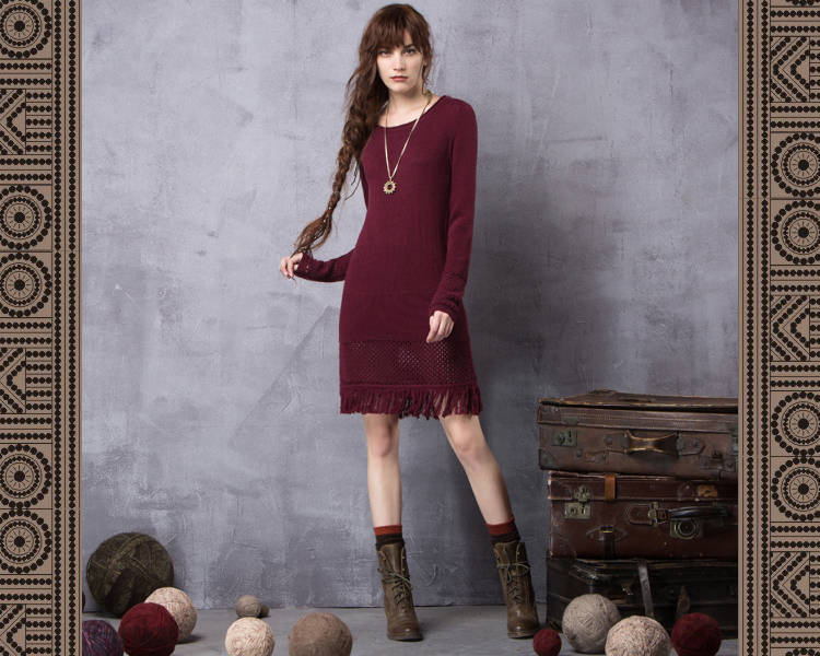 キッズはフリンジボアワンピ、ママはフリンジニットワンピでリンクコーデ。