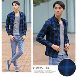 インナーに黒を着れば着やせになりますし、青のチェックシャツは爽やかさが増します♪デニムにもチノパンにも合わせやすい所が嬉しいですね☆