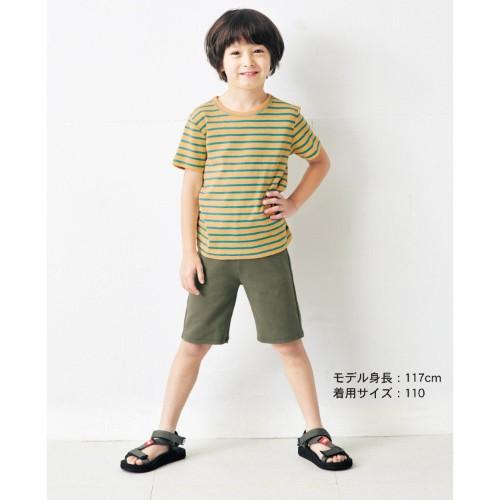 元気いっぱい動けるハーフ丈で、汚れが目立ちにくいカーキ色は1着持っているだけで重宝します。股上が深めでしゃがんでもお腹や背中が出にくく作られているので安心!綿100%で、やさしい肌ざわり、やわらかく伸びが良いので嬉しいですね。