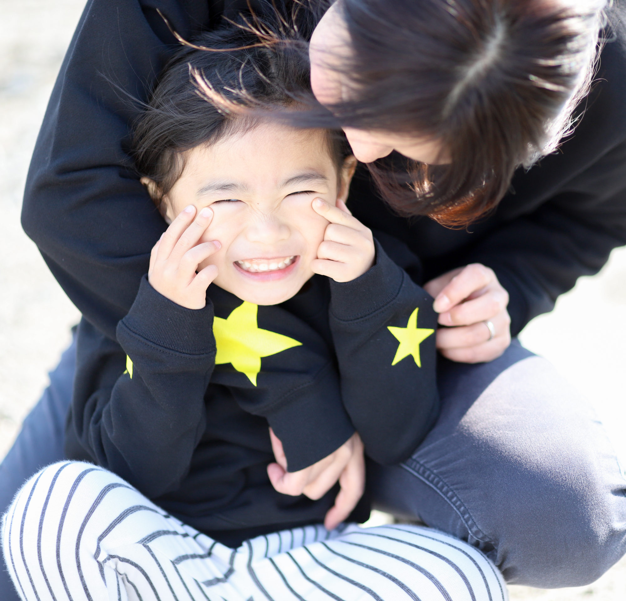 【STAR ON ARM】はキッズが両腕に、そしてパパとママはそれぞれ片腕に星マークがデザインされたワンポイントのスウェットです。キッズを真ん中に手を繋いで歩くと、リンクしているようにデザインがされています。