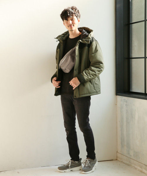 アウターもトップスと同じようにボリューム感のあるもこもこ素材のブルゾンやコートが合います。