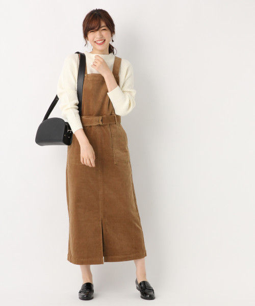 エプロンのような形をしているジャンパースカートはインナー1枚でコーデができるアイテムです。