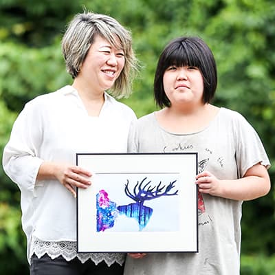親子の絆を作るLINKCODEKIDSの親子リンクコーデ。その着るArtは、障がいを持つ方が描かれたもの。